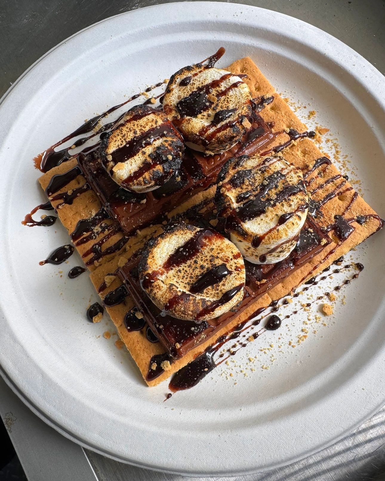 Crispy Sprouts with burrata, prosciutto, & crushed pistachios, topped with truffle balsamic