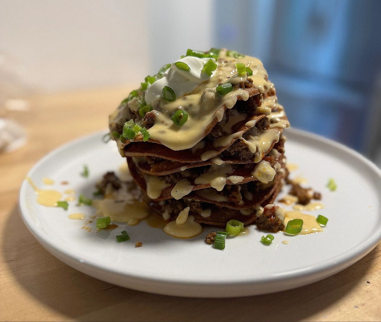Ricotta stuffed rigatoni topped with marsala meatballs